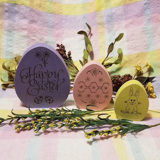 Custom Chunky Wood Easter Eggs - set of 3 - Laser Engraved